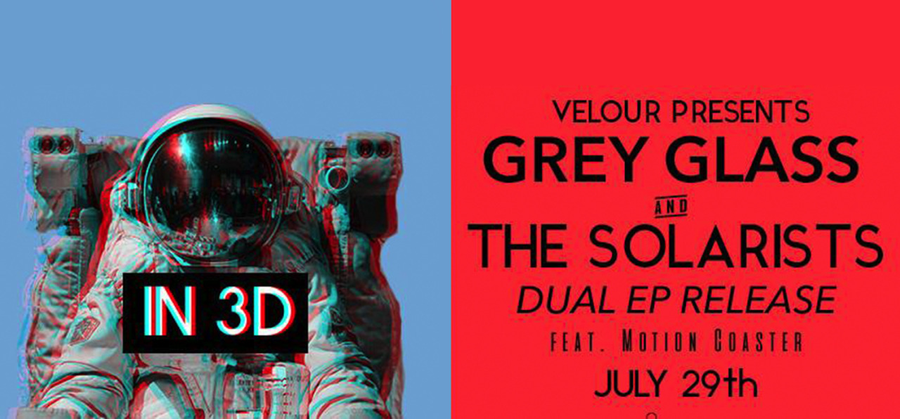 The show is tomorrow, July 29th at Velour Live Music Gallery. Velour 2016 Summer Battle of the Bands finalists Motion Coaster will be opening for both bands. Tickets are available online at 24tix.com for $7. Tickets at the door are also $7 (cash only). Doors open at 8PM. Make sure to like both Grey Glass and The Solarists on Facebook, check out their concert promo video below, and bring money for some fresh new merch.